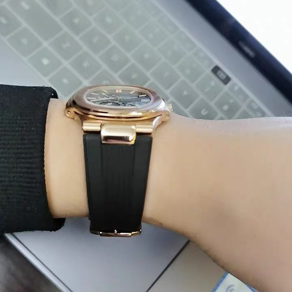 维瑞亚橡胶表带适用于百达翡丽鹦鹉螺 5712 玫瑰金 白金